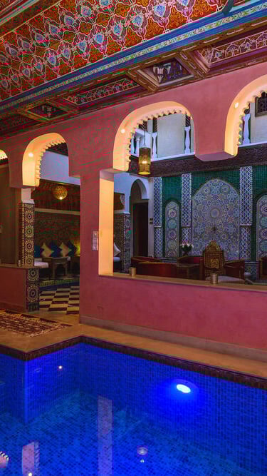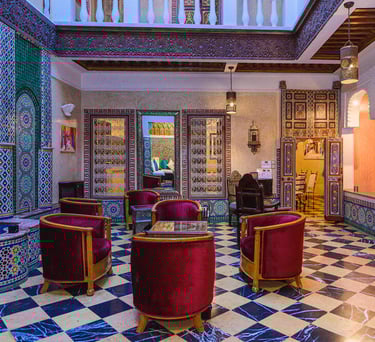 Explorez chaque recoin de notre magnifique riad, de l'élégant patio à nos espaces de travail modernes, comme si vous y étiez.